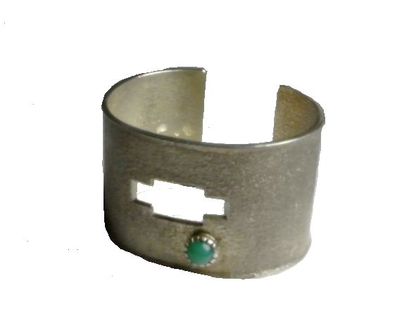 Unlike his father and brothers Jason’s tufa casted pieces are strikingly architectural and modern in character. When using turquoise or other stones, they are secure in their crenelated mounting.