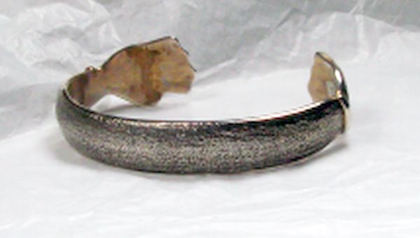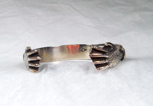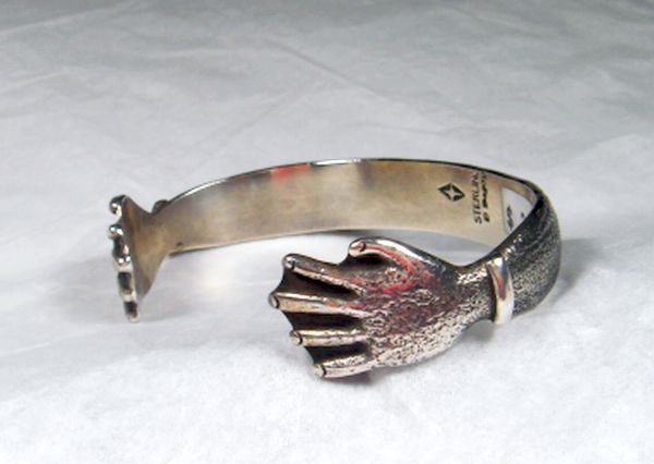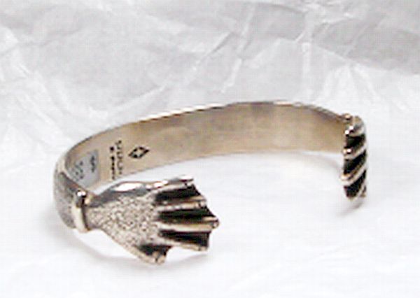 Tufa cast bracelet by Navajo silversmith Dale Begaye. This unique ½” wide Sterling Silver bracelet has hands at each end. The inside measurement is 6” with a 1 3/8” gap.